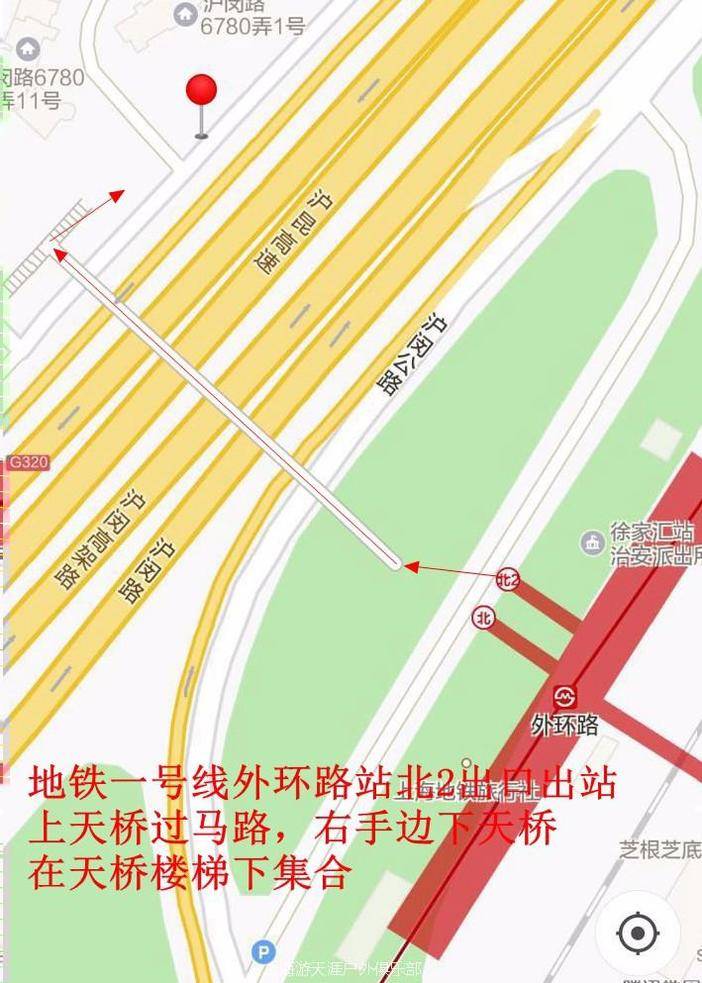 第二集合点:07:30地铁一号线外环路站北2出口出站,上天桥过马路,右手边下天桥,在天桥楼梯下集合,建议从嘉定来的队员可以11号线到徐家汇转1号线,从浦东过来的队员建议到“外环路站”集合,车子从第一集合点出发后领队会在活动群里通知
