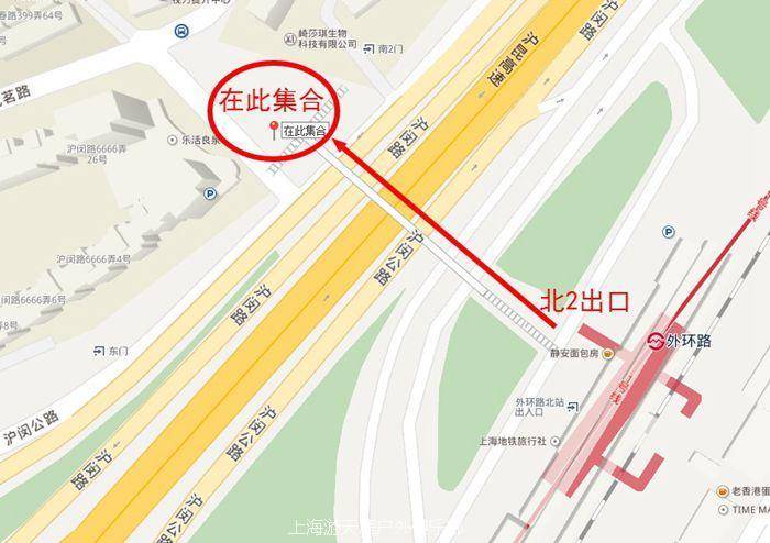 第二集合点:07:30 “地铁1号线外环路站”北2出口出站,上天桥过马路,右手边下天桥,在天桥楼梯下集合。建议从嘉定来的队员可以11号线到徐家汇转1号线到外环路站集合,车子从第一集合点出发后领队会在活动群里通知。交通没什么意外的话07:30准时出发