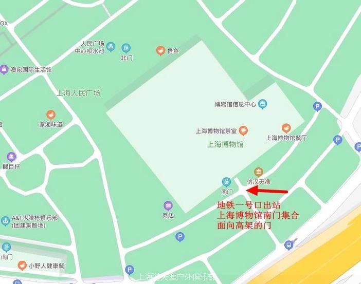 第二集合点:08:15地铁人民广场博物馆南门,面向高架和石狮子的(不是面向喷泉的门),地铁一号口出站往博物馆走(此处不能停车,只能人等车,不能车等人,车到马上上人,如有人迟到算自动无条件放弃本次活动)