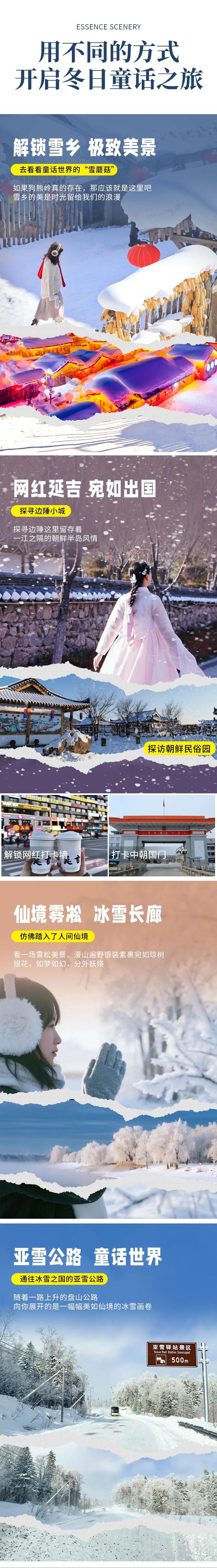 1、雪乡因条件有限不提供一次性洗漱用品和吹风机,请提前自备。