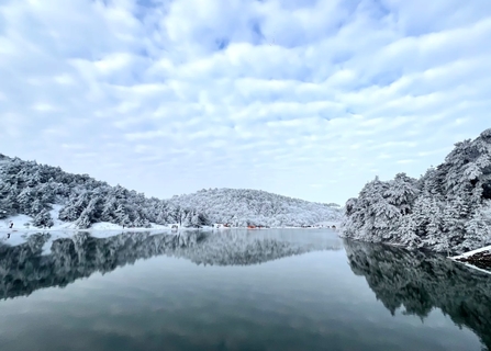 冬季(12月至次年2月)的云顶冰湖、雾凇和雪景,被游客称为“杭州版赛里木湖”。