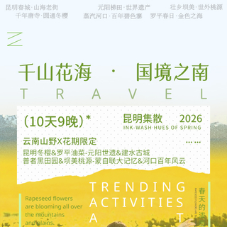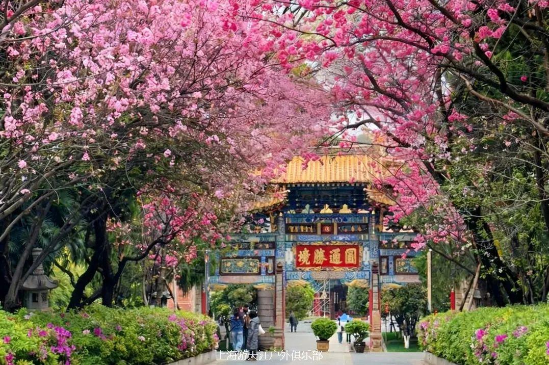09:00 抵达【圆通山樱花】,每年初春,一场盛大的“粉色风暴”便会如期席卷圆通山。 数千株云南樱花与垂丝海棠沿山势竞相怒放,将整片山野渲染成一片如梦似幻的绯云。花潮之下,游人如织,踏青赏春的欢愉与漫天飞舞的花瓣共同酿造出昆明城中最具生命力的春日盛宴,短暂而绚烂。