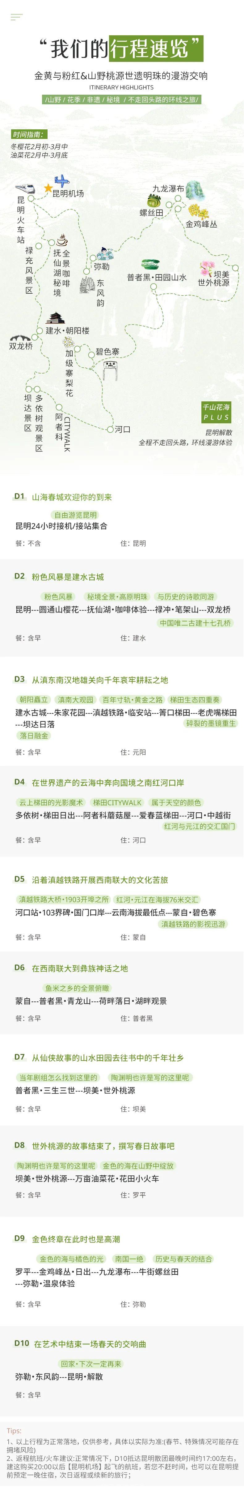 1. 花期每年受气温和气候的变化影响较大,花开及花落日期每年无法固定,无法保证每个团期看到的景色皆为盛花期,请大家保持平常心对待;