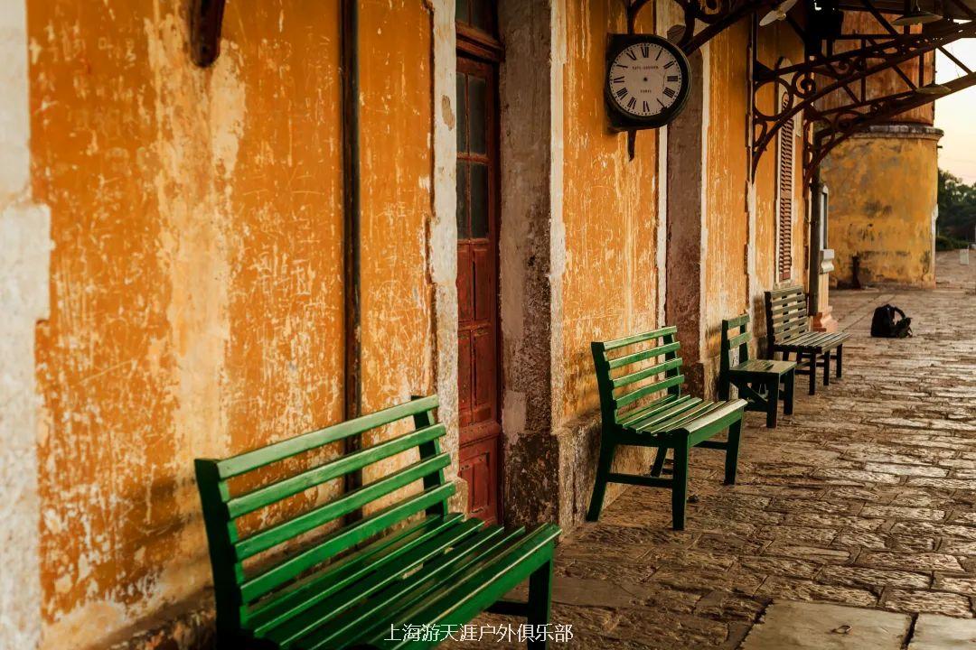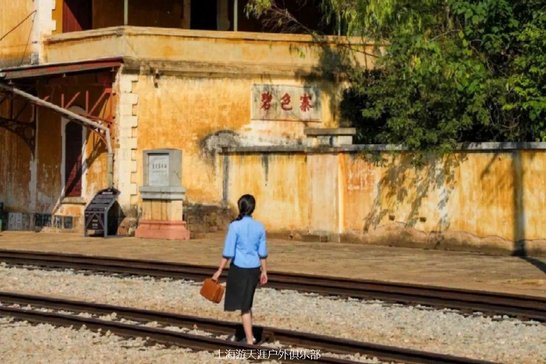 16:00到达【碧色寨·滇越铁路】,法式站房鹅黄墙面剥落如癣,【三面钟】锈针卡在1910。踩上米轨的瞬间,红土从枕木裂缝涌出,中国第一块【红土网球场】浮现而来。候车廊孔雀蓝木窗忽被撞开——百年未发的列车,正载着野象群冲进站长室的镜中。【芳华】拍摄的痕迹仍在其中,【滇越铁路】货运列车仍穿梭在【北回归线纪念碑】旁。