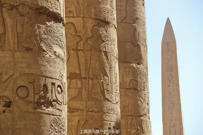 【卡尔纳克神庙】:位于卢克索以北5公里处,是古埃及帝国遗留的最壮观的神庙,因其浩大的规模而闻名世界,仅保存完好的部分占地就达30多公顷。卡尔纳克神庙共有三部分——供奉太阳神阿蒙(Amun)的阿蒙神庙,供奉阿蒙妻子战争女神穆特(Mut)的神庙,以及孟修神庙,两旁满是狮身人面像的甬道则直通卢克索神庙。