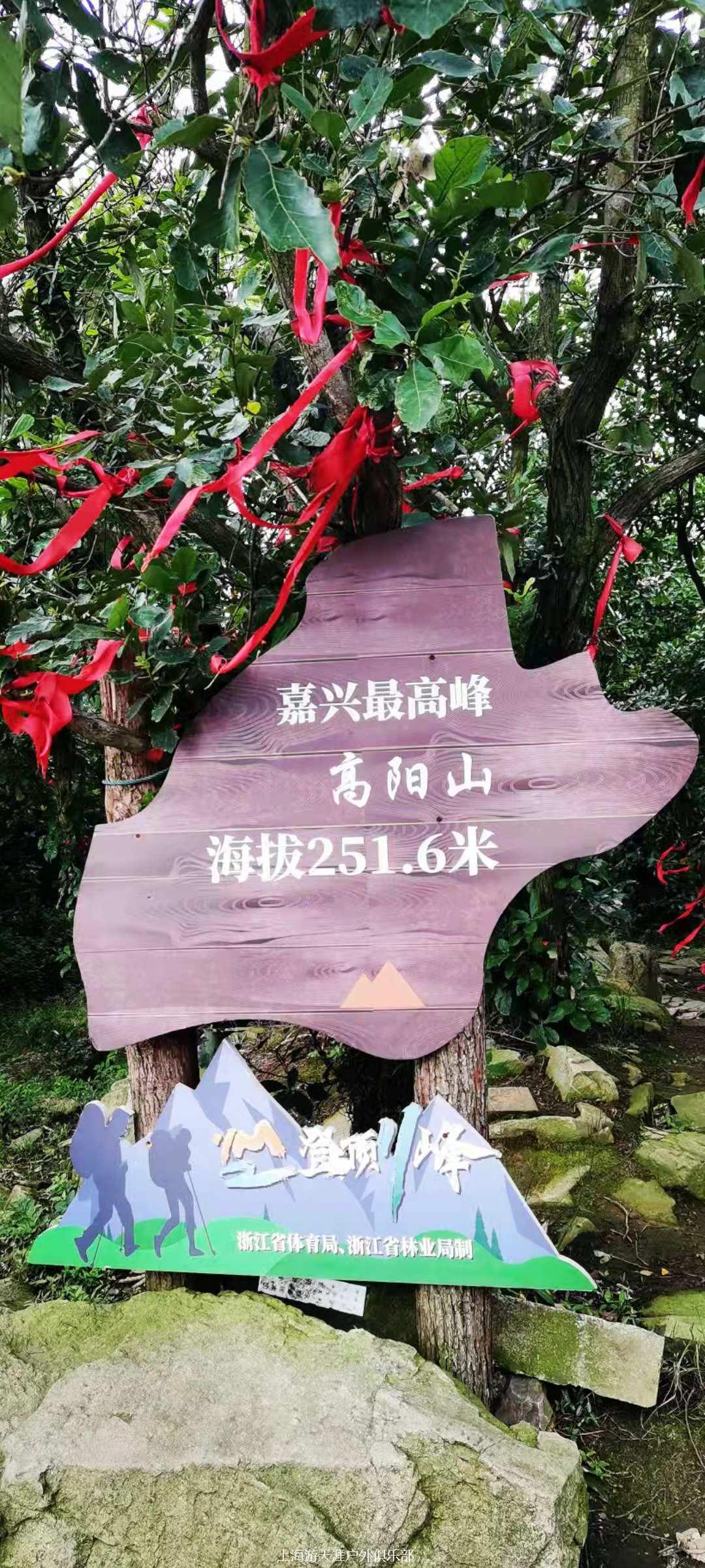 12:00随后沿路缓坡下行,至公路,随后爬高阳山,海拔约251.6米,是嘉兴最高峰。