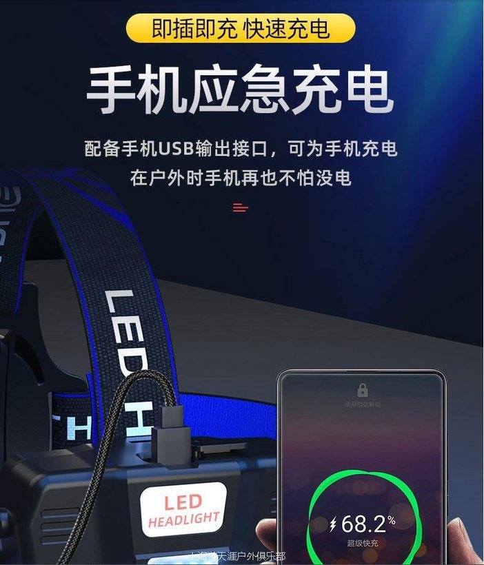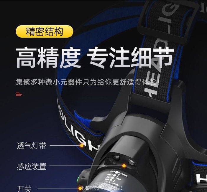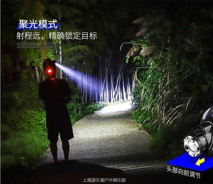 LED强光超亮头戴式头灯,户外远射充电疝气感灯