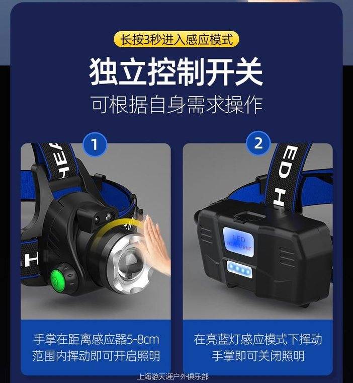 5号:自动挥手感应,白光,二电一充,有电量显示,可给手机充电,续航200小时