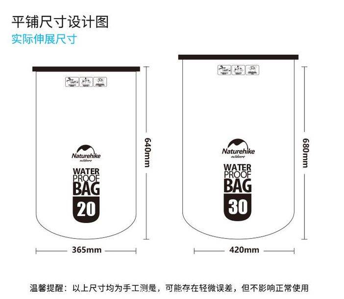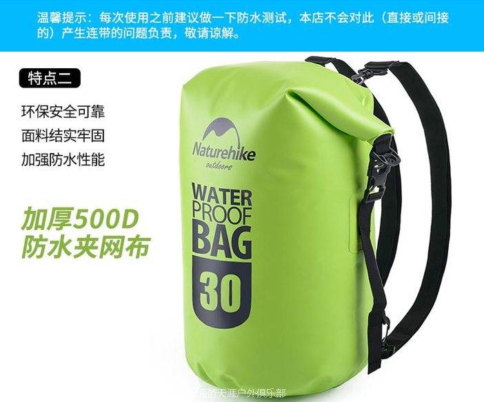 请注意,所有的这类防水包防水指数是按静水压来测试的,如果只是到沙滩上、游泳池放置衣物,一般游泳池和海里游泳,下雨天轻装徒步使用是没有任何问题的