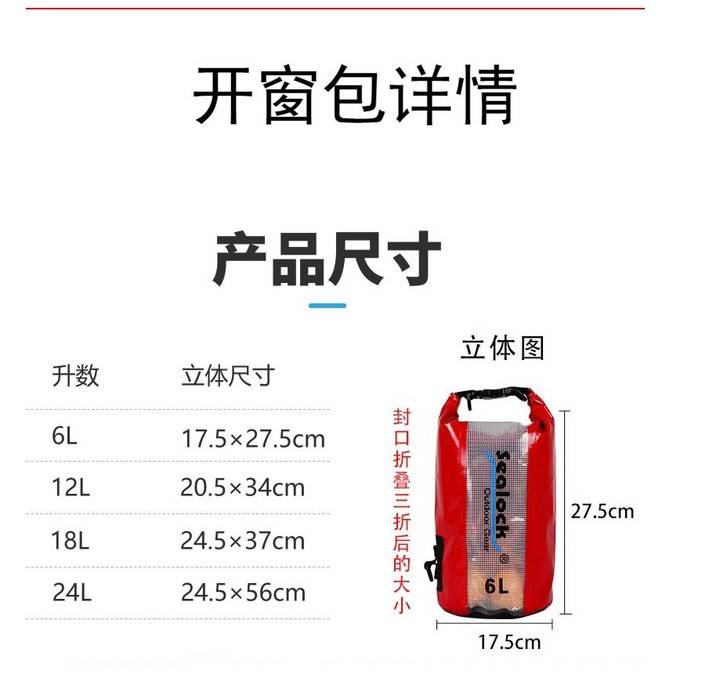 请注意,所有的这类防水包防水指数是按静水压来测试的,如果只是到沙滩上、游泳池放置衣物,一般游泳池和海里游泳,下雨天轻装徒步使用是没有任何问题的