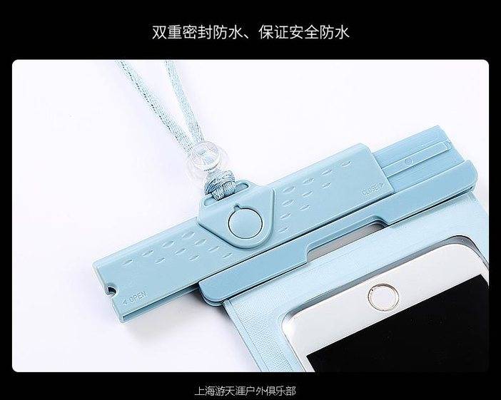 参加户外溯溪活动的时候请配合防水背包一起使用,手机套好防水袋以后再放进防水背包里随身携带,需要拍照的时候可以挂在脖子上,不使用的时候请放在防水包里