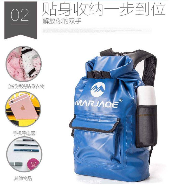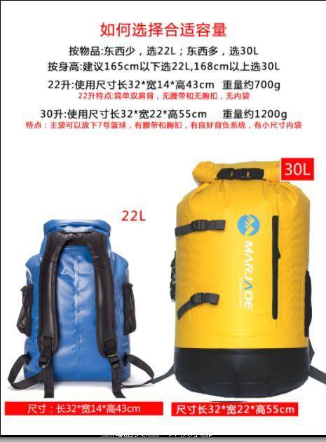 建议可以购买一个小型的6升防水袋装电子产品,然后再买一个大的双肩防水包一起使用